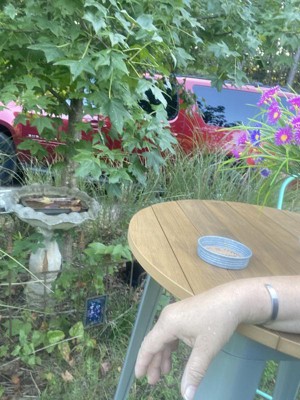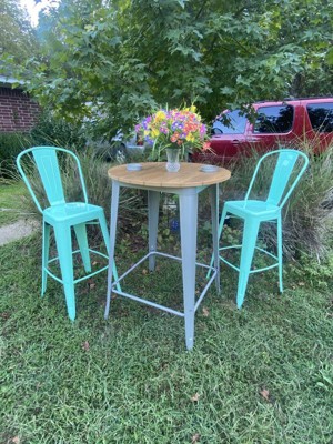 [This review was collected as part of a promotion.] I was able to receive this table for review and it has turned into a nice addition to what we have. Although without the chairs or stools to go with it, it is a useful outdoor or indoor bar-type table. We have used it to set up our coffee machine on. It has plenty of table-space and at a good height to stand beside if you can't sit.