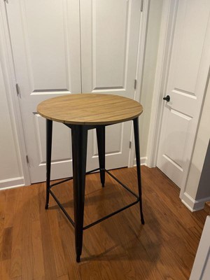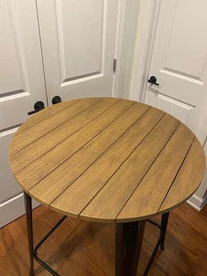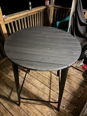 [This review was collected as part of a promotion.] Love this 30 inch round topped pub table!!! It’s made with quality materials and seems very sturdy. It has a 200 lb. weight limit. It does have to be assembled. No tools are required to assemble, everything you need for assembly is included. The table top looks like it’s a wood top table, but in actuality it’s something different type of material which is great for outdoor dining/use! Can be used as a standing height table, it’s the perfect height for standing around with a cool beverage and snacks with friends or add bar stools and sit around. You could easily have up to four bar stools around it.