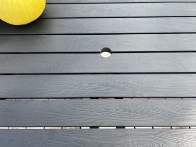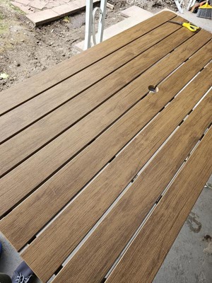 [This review was collected as part of a promotion.] This table is amazing quality! Honestly this is probably the last patio table I will ever need! It's so heavy duty, but it's still absolutely beautiful. The grain in the table makes it gorgeous, and helps keep things in place. It has a perfect umbrella hole. I got a beautiful huge umbrella, this table (is not ) going to be picked up by the umbrella if it gets a bit gusty out. This table is a 10 out of 10 it's beautiful, classy, so durable, just excellently made! It will easily fit your decor it can fit anywhere from farm house, shabby chic, to elevated, classy, elegant. I can't say a single negative thing about this beauty. My pictures do not have my umbrella because I wanted to just focus on the table alone.