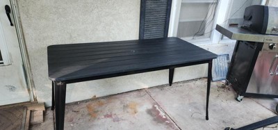 [This review was collected as part of a promotion.] I love this table. It was super easy to put together and seems very sturdy. We added an umbrella and finally love sitting on our back patio. It's the perfect size for our small space and for just the three of us in my family. The only change my husband would suggest is that he doesn't love how the legs have a little bit of a notch in at the foot of each leg. He thinks things like pants or shoes or whatever might get caught there. But, we haven't noticed any issues, so maybe he's overthinking. We are definitely happy with this table.