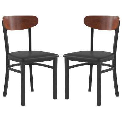Emma and Oliver Industrial Dining Chair with Black Rolled Steel Frame and Solid Wood Seat in Natural Birch Finish - 500 lbs. Static Weight Capacity