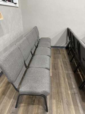 The Java Molded Foam Church Chair - 20.5 in. Wide with Textured Black Frame provides a durable seating solution for your fellowship hall or convention center. This comfortably padded stack chair not only satisfies seating in Churches, but work well in hotel lobbies, banquet halls and conference facilities. Keep all guests engaged with the 4" thick foam padding containing zero fillers. Integrated ganging devices connect chairs together for uniform row seating. This padded chair was built to last with a 1000 lb. weight capacity, 16 gauge steel frame and T-Nut construction with a metal on metal connection that's more durable than traditional wood screws. These beautifully crafted chairs go from the truck to your Sanctuary, as they don't require any assembly. Save your staff time and frustration with the purchase of these ready-to-use Stackable Church Chairs. Additional Features: Plywood base for seats and backs, Foam and Fabric meet flame retardant specification CA117, Load tested to hold up to 1,000 lbs. of static weight, Durable fabric withstands up to 200,000 double rubs (Wyzenbeek test)