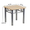 Dress up your space and make your office or reception area more inviting with this Natural Laminate End Table. Not only does the ample surface area serve as a convenient space for holding customers' belongings, it's also great for displaying magazines, newspapers, and brochures. Add a lamp and some greenery to create a warm, professional look that is sure to impress your guests. This end table's silver metal frame with decorative sides provides a sturdy foundation while adding a sophisticated touch to any room. The legs are capped with plastic glides, helping to keep your floor surfaces in pristine condition. Create a chic, comfortable sitting area in your lobby with this end table. Additional Features: Easy to clean with water and dry cloth, End table for living room, reception area, lobbies, salons and offices