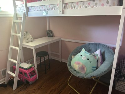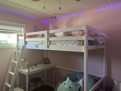 My daughter’s room is small so this full size loft is perfect to give her more floor space. She loves the built in desk and cozy corner under it. Highly recommend to give your kid the extra space they need! Would also make a great gaming desk area.