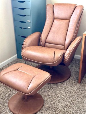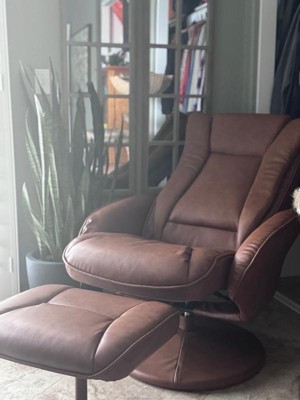 Product Name: Emma and Oliver Massaging Multi-Position Plush Recliner with Side Pocket and Ottoman in Brown Faux Leather