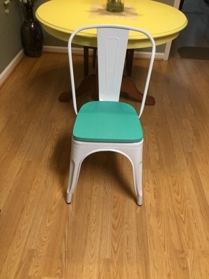 Refresh your kitchen, dining room, deck or patio with this colorful dining chair featuring an all-weather polystyrene seat that won't rot, chip, or peel. With vintage appeal, this bistro style chair will be a welcome addition your indoor or outdoor entertaining spaces. Durably crafted, the steel frame is coated in a durable powder coat finish to endure even with heavy usage. The 500 pound static weight capacity you'll be able to accommodate all visitors. The stack chair, available in multiple colors, arrives fully assembled for your convenience and the poly resin seat attaches to your chair in minutes for immediate enjoyment. These chairs wipe clean with water and a neutral detergent. For longevity, care should be taken to protect chair frame from long periods of wet weather.