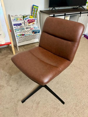 [This review was collected as part of a promotion.] I am obsessed with this chair. It’s the perfect size for my desk in the leather is super easy to clean. I also love how it does not have handles so you can kind of sit the way that you want to sit with no restrictions.