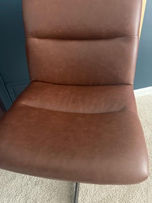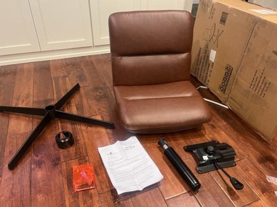 [This review was collected as part of a promotion.] Chair is really beautiful and well made,was easy to install and absolutely gorgeous cognac color.Leather is soft,and comfortable to sit in it.It’s not too big perfect for office