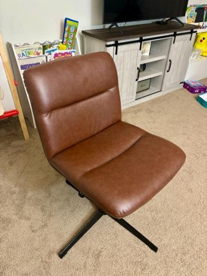 - Armless Stationary Office Chair with Padded Faux Leather Cushions