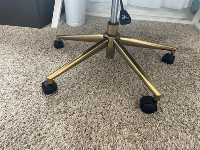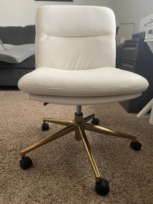 [This review was collected as part of a promotion.] This, easy to assemble, chair has a really nice white and gold finish. It’s pretty stable, super comfortable and it spins really good. I am fascinated by how well it spins. That’s my favorite feature. The only downside to me is that the highest height setting is 19 inches. However, the comfort and ease of spinning make me really happy with it.