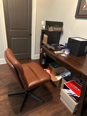 Product Name: Emma and Oliver Mid-Back Swivel Office Chair with Cognac Padded Faux Leather & Sturdy Blk Frame