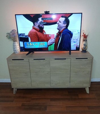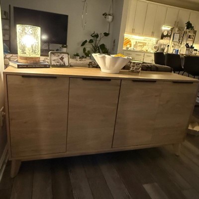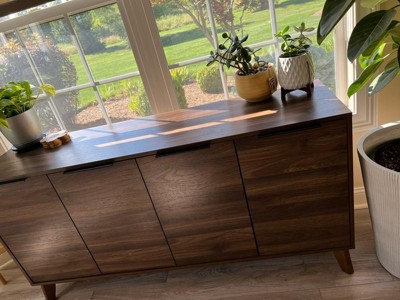 [This review was collected as part of a promotion.] This is a stylish and versatile addition to my home! It was very easy to set up. I had no issues with the cam locks locking like I’ve had with other furniture. It’s very durable. With other furniture I’ve actually had the finish come off when I peeled the construction number stickers off. This multifunctional cabinet can serve as a traditional buffet in my dining room or as a chic TV stand for my television television under 64 inches in my living room. Its mid-century modern design ensures it fits effortlessly into my decor. It features soft-close doors for added convenience and can support up to 200 lbs. The adjustable inner shelves can hold up to 25 lbs., making it perfect for organizing my clutter, plates, or gaming systems. With plastic floor glides to protect my flooring and a straightforward assembly process that took under an hour, this piece is stress free and easy to maintain. Very easy to clean. I highly recommend.