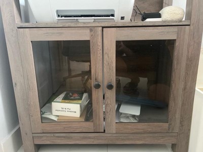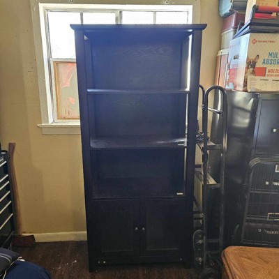 [This review was collected as part of a promotion.] I was THRILLED to have an opportunity to receive this product. We needed a bookshelf and the bottom cabinet looked like a great addition. Overall, it seems much shorter than the photo and maybe even a bit wider so that seemed a bit misleading but overall I think it’s very pretty. I decided to put it together myself and the instructions were very specific and helpful. It was an easy process that only took an hour or so. It was very heavy the ugh and I was VERY disappointed when the cabinet doors didn’t even line up correctly! I had to make shift it and make my own screw holes to align it. Quite disappointing. I would’ve preferred bigger pads on the bottoms too instead of little pins? But it seems good quality and the coloring is very nice. Overall I’m happy with it!