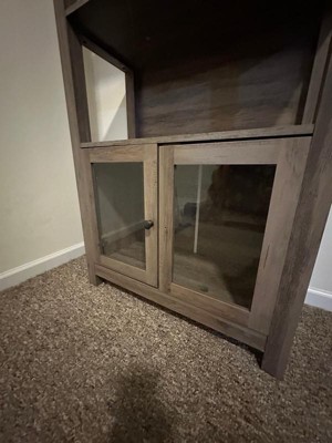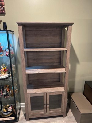 [This review was collected as part of a promotion.] This book case is really nice quality ! It’s super big and sturdy. I love the storage with the door underneath. The color is a nice beachy grayish wood.