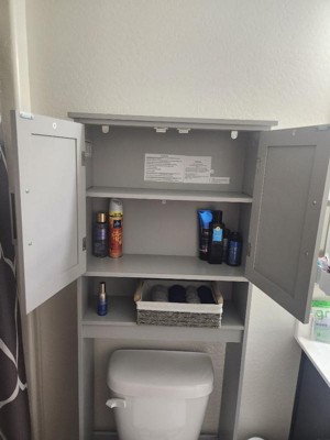[This review was collected as part of a promotion.] This is a great over the toilet cabinet! It was easy to assemble and fit perfectly in our bathroom. It’s a great space to put toiletries and bathroom supplies!