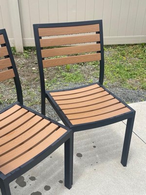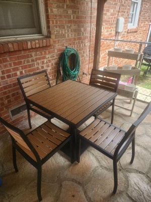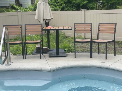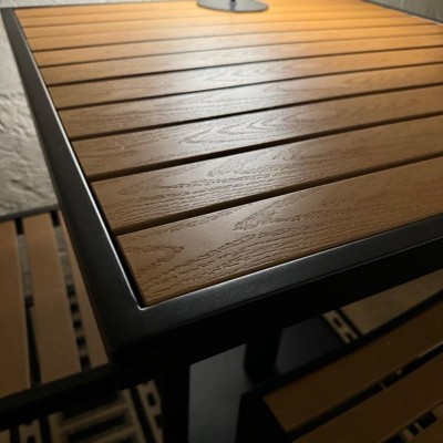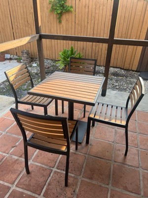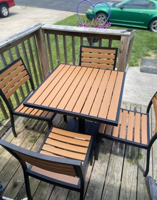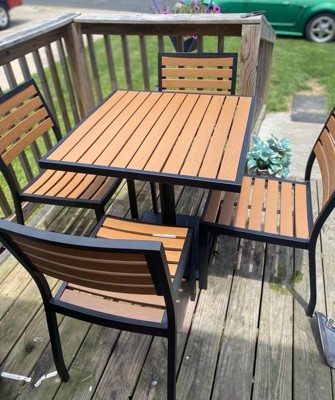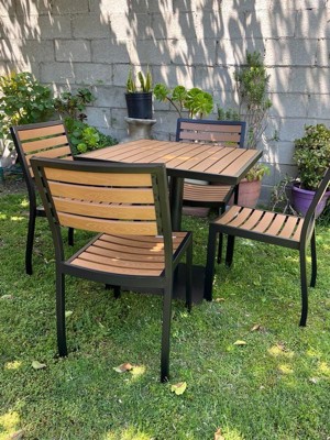 Emma and Oliver Outdoor Patio Bistro Dining Table Set with 4 Chairs and Faux Teak Poly Slats