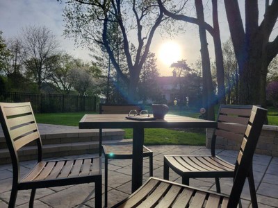 [This review was collected as part of a promotion.] Patio furniture was a perfect addition to our backyard. The chairs are super comfortable! The table is very heavy and good quality. Very easy to put together. Assembly took less than an hour.