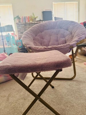 [This review was collected as part of a promotion.] Thank you Influenster for the Gwen 38" Oversize Portable Faux Fur Folding Saucer Moon Chair with Folding Ottoman for Dorm and Bedroom. I love my chair and ottoman. It’s very chic, classy and comfortable. It fits right in with my fragrance/content room decor. It came already assembled, so no tools are needed. It’s very firm and comfortable. I weight 180 and it holds me perfectly and doesn’t move when I sit in my chair. It’s ANY age appropriate so get yours to chill and relax with a good book.
