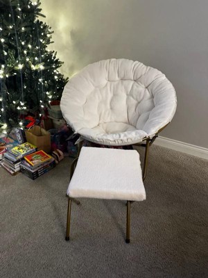 [This review was collected as part of a promotion.] I recently purchased the 38” oversize portable faux fur folding saucer moon chair with the matching folding ottoman, and it has exceeded every expectation. The appearance alone is stunning—the faux fur looks plush and inviting, instantly elevating the look of any room. I was impressed by the size as well; it’s genuinely oversized and provides a comfortable, cozy seat that feels like a personal relaxation nook. Despite its softness, the durability is outstanding. The frame feels sturdy, and both the chair and ottoman hold their shape extremely well even after daily use. The packaging was excellent, too. Everything arrived neatly folded, protected, and easy to unpack without any hassle. Another huge bonus is how simple cleaning has been. A quick shake or light vacuum keeps the faux fur looking fresh and fluffy. Overall, this set is stylish, comfortable, and built to last. I couldn’t be happier with this purchase and highly recommend it to anyone looking for comfort and quality.
