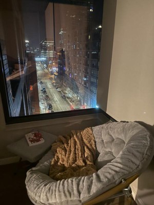 [This review was collected as part of a promotion.] Ok, I was so so excited to get this because I absolutely love mama and papa-san style chairs. I’ve owned one wherever I live for the majority of my life, because I just love curling up in a soft fluffy chair. I moved recently and have had to buy all new furniture from scratch, and I haven’t had the room or budget to add any seating besides my couch and barstools. So this was literally perfect for me. I’ve got a little nook in a corner of my living room that I had no idea what to do with- too small to fit most things, but it has a beautiful view of the city. I put this chair right in front of that nook with an electric throw blanket and a few of my books, and it fits perfect! Now I can curl up in it and read at night while enjoying a view of the city during thunderstorms or while it’s snowing etc. This chair is perfect for someone who doesn’t have a lot of space. It would go great in a teenagers room or a dorm room, a reading nook, or as extra seating for someone with a smaller apartment or play room. I’m 5’6 and a 135lbs and I like to curl up while I read, so this works perfect for me. I think this would work well for anyone my size or smaller. If you are bigger or like a really roomy seat where you can stretch out a lot, you’ll probably need one that’s a bigger size. The stool does let you stretch your legs out, which is a nice addition, but I still think someone bigger would probably prefer a larger version of this chair. The material of this chair is also super soft- that’s while I love this style of chair. It feels like you’re laying on a nice fluffy pillow or blanket. Add a soft throw on top of it and grab yourself a warm cup of tea, and you’re as comfy as can be! Set up was also super easy. I’m not very strong, but these are very light and I was easily able to carry this up to my apartment. The stool and the seat come in two seperate packages, and set up is so simple that even a child could do it. For the chair, you literally just unfold it like you would a normally folding chair- put you hands on the legs and pull it open, bam, done. The stool is done the exact same way, and then you just attached the fluffy top of the stool to its base by matching it up with a strip of velcro that’s already lined up on top for you. So this is perfect to send to like a daughter who’s off to collage or something- it won’t take up too much space, it’s cute and comfy, it’s light and easy to bring inside, and set up only takes 10 seconds. I wouldn’t recommend this to someone who’s like 6ft tall or has a larger frame because it will be too small for them. Personally, I love this and would highly recommend it to anyone looking for a new cute and comfy addition to their home! *This product was received for free in exchange for an honest review.