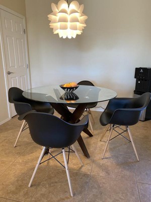 Emma and Oliver Plastic Accent Dining Chair with Arms and Wooden Legs