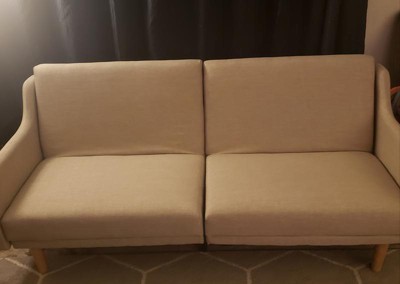 [This review was collected as part of a promotion.] We got this to go in our play room and it is perfect for the space! The kids love it and I can see us using the futon for when they have sleepovers. The box was pretty heavy (albeit compact) and it took two of us to get it in the house. Set up was pretty easy and only took us less than 10 minutes to put the feet on. The futon mechanism is easy to operate and it’s a great little compact couch. It is perfect for a small space and because it can fold up without the legs, I think it would actually be a great couch for someone who moves a lot. I think the color on this one was called gray but I feel like it’s definitely more on the beige side. We have a gray couch and setting this next to it, it definitely has more beige tones. My other gripe with this is that it’s really not that comfortable. I like it because it’s small and fits the space well, but I don’t think I could sit it in for hours. It is pretty stiff and feels like it will hold up really well with the kids using it.