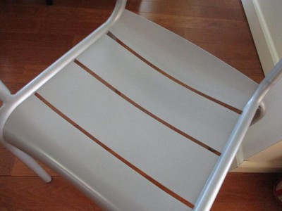 [This review was collected as part of a promotion.] I originally got this belnic chair for my back deck, but I love it so much I decided to keep it in the house. The finish is a beautiful silver/aluminum which gives it a modern/industrial look that I love. It has a comfortable slat style seat and open slat back which is very comfortable. It's super lightweight and easily stackable (will be getting more of these). It's designed for indoor or outdoor use and the frame is rust resistant.