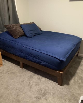 The bed frame was nice but it wasn’t safe for our kids. The 4 corners of the frame were sticking out of the full size bed. There was nothing to hold the bed when he jumps on it. We were afraid the bed would tip over. We had to return it. Our full size bed didn’t fit the frame