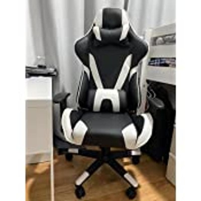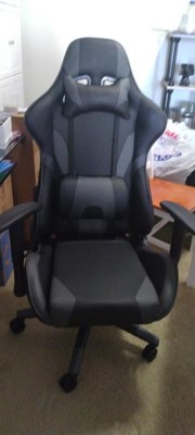 Have game day any time on your PC or with your console of choice when you own this black racing gaming chair. Featuring a reclining back and covered in soft and durable LeatherSoft upholstery, this high back ergonomic office chair is essential. Support for your body is key when you will be sitting for extended periods and this PC office desk chair has you covered. Adjustable headrest and lumbar pillows can be repositioned where you need them or quickly unsnap them if you choose to remove them. Adjustable pivot arms relieve pressure from your neck and shoulders as well as the upper body. Gamers need ergonomic gaming chairs that'll keep them comfortable for many hours and this reclining office gaming chair with adjustable lumbar support will provide optimal support. Whether you need to lean back a little or a lot there's a separate lever to recline the back 87° ~ 145° while the lever underneath the seat controls the seat height and locks the chair in an upright position. You'll enjoy endless hours of comfortable game play in this ergonomic PC chair. If things get intense and you end up knocking over your drink or nachos, don't worry, This reclining chair cleans up easily with a solvent and water based cleaner such as foam. Complete your gaming experience with our red gaming ergonomic desk with cup holder and headphone hook or black gaming desk with cup holder, headphone hook, and monitor/smartphone stand. Additional Features: Tilt Tension Adjustment Knob adjusts the chair's backward tilt resistance, Pneumatic Seat Height Adjustment, 5-Star Nylon Base with White End Caps and Sporty Dual-Wheel Casters, LeatherSoft is leather and polyurethane for added Softness and Durability