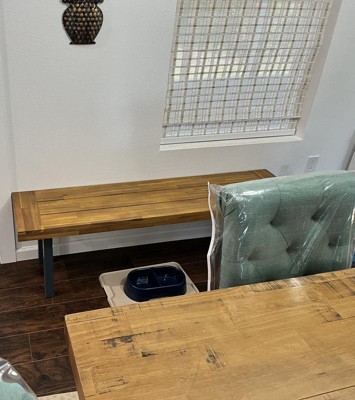[This review was collected as part of a promotion.] I just love this Martindale Solid Acacia Wood Patio Dining Bench! The natural finish matches my dining table I have perfectly! And guess what… Noooo power tools required!! It took me 15 minutes to unpack and assemble the legs, done! I like the solid wood top and the blue flared legs gives it a little extra pop of color. I’m really impressed with the quality craftsmanship because this is a functioning bench I can use for extra seating at holidays. Not to mention is just looks good in my dining room.