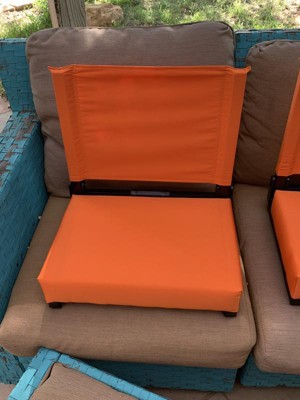 I recently purchased 3 of these chairs to use at Hs competitions and we absolutely love them ! they r so comfortable they feel like you're sitting on a sofa !!!! They r just the right height , they lock firmly on the bleacher and the cushions r such a generous size -the chair back gives great support-the fabric is soft and when the chair is folded it has a very comfortable carry handle which makes it very easy to carry -it is made very well-great quality fabric I would recommend this chair to anyone ! Great product for a great price -highly recommend !