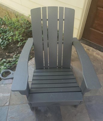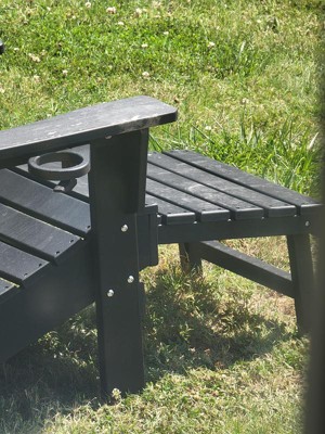 [This review was collected as part of a promotion.] This Halifax HDPE Adirondack Chair with Cup Holder and Pull Out Ottoman is really nice and easy to assemble. The pullout ottoman allows me to rest my legs when I want to recline. It has extra wide armrests. There is a slide out cupholder on the right side that is perfect to hold my drink. The black color looks nice, and they have brighter colors you can choose from depending on your style. It is made from faux wood composition that will not rot, chip, or peel, so you don't have to worry about damage to the chair from being outdoors. I use this chair in our backyard to relax while my children play. I find it to be quite comfortable and it is very well made.