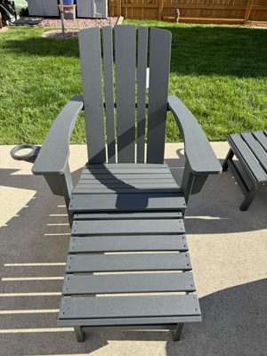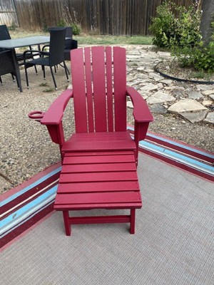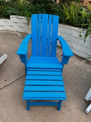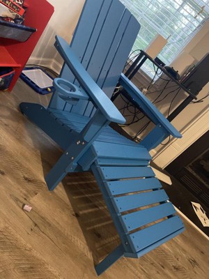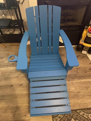 [This review was collected as part of a promotion.] This Adirondack chair is a great addition to my outdoor decor. I love the blue color–it’s so bright and happy and brings a fun beachy feel to my patio. Of course, I love the convenience of a cup holder! The plastic build is sturdy and durable, and I appreciate how easy it is to clean off. I don’t have to be careful about damaging wood or paint, and that’s a huge deal in my book. I’m taking off a star because having the ottoman pull out from the chair is one of those things that seems great in theory, but in practice is a bit clunky. It can be awkward to sit down if you have it out, but hard to pull out if you’re sitting down. However, it is a nice space saver when you have it slid in, since you don’t have to deal with an extra piece of furniture.The shape of the chair is very comfortable for lounging in the sun with or without the footrest, but I’m quite short (5”3”), and can’t imagine it would be as comfortable if you’re much taller. Even the width is smaller than my other adirondack chairs. Proportionately, this seems better suited to teens/petite adults than the average person. If the design/size works for what you need, I think this is a quality chair.