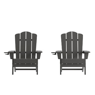 Emma and Oliver Set of 2 Adirondack Chairs with Cup Holders, Weather Resistant HDPE Adirondack Chairs in Gray