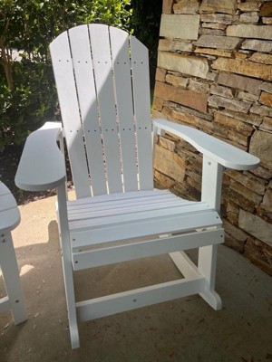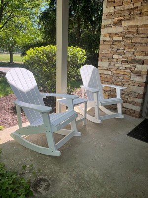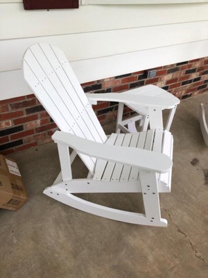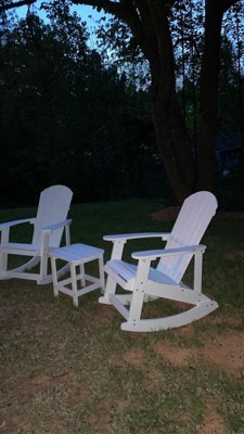 Emma and Oliver Set of 2 Classic All-Weather Poly Resin Rocking Adirondack Chairs in White with Matching Side Table for Year Round Use