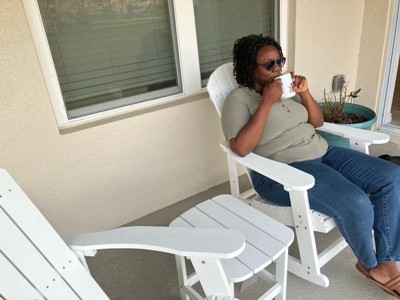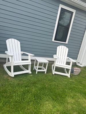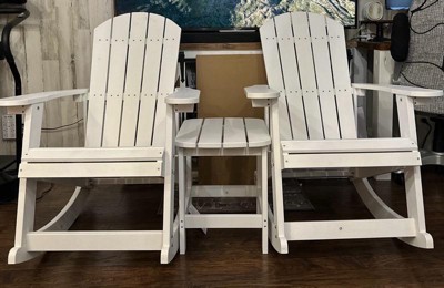 [This review was collected as part of a promotion.] Absolutely love this set. These rockers and side table were easy to put together and love how beautiful they are. Very sturdy and comfortable to relax in. The poly resin material is so nice, don’t have to worry about the weather breaking down the material. Definitely a must have for your patio!!