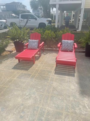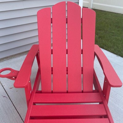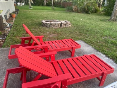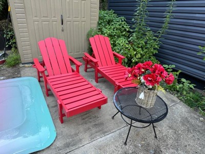 [This review was collected as part of a promotion.] These Adirondack chairs are perfect for summer. They can be declined and you can lounge or sun bathe. They have nice cup holders to keep your drink safely close by. The assembly was simple since they were mostly already put together. They are made of a durable material and it’s nice not to worry about painting them. Great set of chairs and a classic style!
