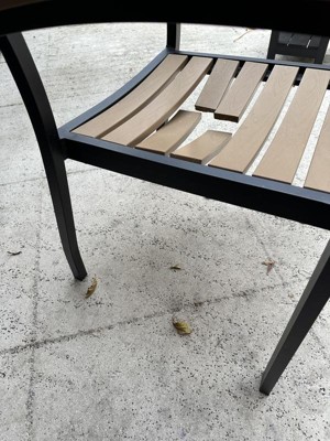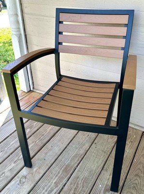 [This review was collected as part of a promotion.] I am really happy with the Lark Outdoor Stackable Chair. I got the black aluminum with the gray faux teak slats. The chair is light weight yet very sturdy. I use the chair in my garage/shop and it’s perfect. It has a great look to it and I’m certain it will withstand the test of time. Excellent product.