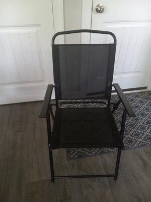 Relax and enjoy your outdoor leisure time with this set of 4 patio sling chairs with armrests. Breathable textilene fabric allows for airflow to keep you cool and is quick drying making these chairs ideal for use outside. Designed to stand up to the elements, these patio chairs are UV fade and weather resistant and boast powder coated rust-resistant steel frames that hold up to 350 lbs. static weight per chair. Protective floor glides prevent damage to indoor flooring surfaces and the lightweight, foldable design allows for easy storage and portability so you can take them along to your favorite locations. These chairs arrive ready for use right out of the box and cleanup is quick and easy with a damp cloth, perfect for busy households. Purchase several sets in multiple colors to complete your indoor or outdoor setup.