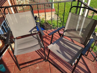 [This review was collected as part of a promotion.] These are nice chairs! We have two on our deck and they are great for relaxing. They are lightweight and easily fold. The mesh seat and back are comfortable and allow air flow for those hot summer days. I do wish they were slightly bigger, but overall I’m satisfied.