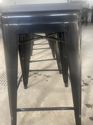 Emma and Oliver Set of Four 24" High Backless Black Metal Counter Height Stools with Black All-Weather Poly Resin Seats for Indoor Use Only