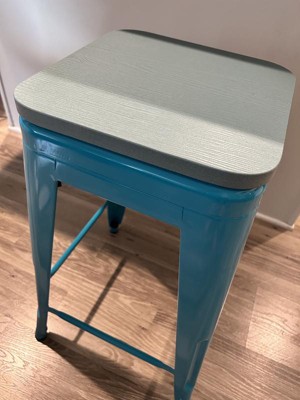 [This review was collected as part of a promotion.] I absolutely love these new stools! The teal blue is just the color I was looking for to match my decor. It stands out in my home and adds a splash of color that it desperately needed. There wasn’t much assembly required. I just had to screw the seats on and took me about 15 minutes to do all four stools. The stools are made of metal and very sturdy. They’re easy to clean with just a wipe. I like that it can stack on top of each other to save space when you need to. There’s another rack so you can rest your feet. They’re the perfect height for my island and easy to slide in and out. I can see these lasting a very long time and can’t wait to have guests over so I can show them off!