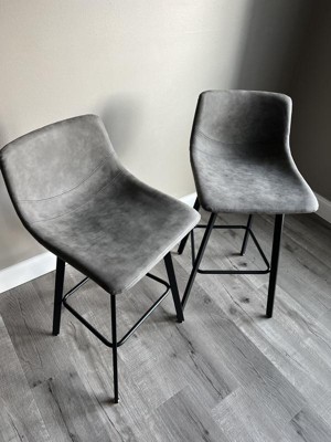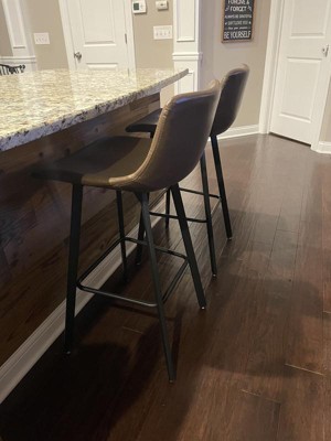 Stylish and suave for the modern home, this set of two upholstered bar stools will make a dynamic statement in any room. Featuring a contoured backrest for supportive comfort, guests will delight in your choice of seating in your kitchen, dining room, man cave and more. A sturdy metal frame in matte black strikes a bold contrast while reinforced bracing supports up to 300 lbs. of static weight for stable, worry free seating. The faux leather upholstery is durable, comfortable and easy to clean, ideal for busy lifestyles. Simply wipe with a dry cloth when needed to maintain its looks. Easily assembled in 30 minutes or less with included tools, hardware and instructions. Integrated glides ensure smooth movement and protect your home's flooring from damage. This stool is also available in a counter height option to carry cohesive style throughout your home.