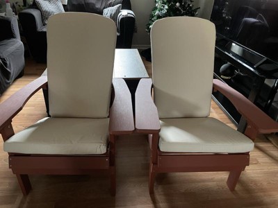 [This review was collected as part of a promotion.] I have wanted a set of Adirondack chairs for my deck for many years. I was hesitant to buy something made of wood because of the maintenance and the possibility of them not standing up to harsh weather. I am really happy with this Charlestown set of all-weather poly resin wood Adirondack chairs because it gives you the best of both worlds. They look like wood but will not rot, and they are UV protected to resist fading. The color I got is green with cream colored cushions which is very attractive and coordinates perfectly with my green rod iron table and chairs. The chairs have extra wide backs and arms, and the cushions are very comfortable. I am a light weight person but I have some very large family members. I will not have to worry about these chairs since they accommodate people up to 350 pounds. The chair itself is advertised as cleaning up with a mild detergent. The cushions can be wiped clean with a damp cloth or the covers can be removed for hand washing if desired. These are quality made heavy weight chairs that should last for many years to come.