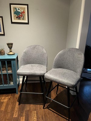 Emma and Oliver Set of Two Gray 26" Faux Linen Upholstered Metal Counter Height Dining Stools