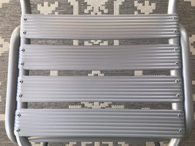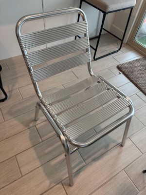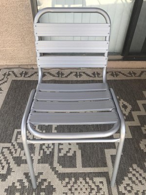 [This review was collected as part of a promotion.] I really love the size and quality of the indoor/outdoor metal stack chair. The slats and design are very appealing to the eye. I really like the silver color and size of the chair. These are light weight yet durable and comfortable. These chairs hold a lot of weight and are a great height for tables or just to sit out on the patio as an accent chair. They are easy to wipe off and great for many occasions. Overall I am very pleased and would recommend these chairs.