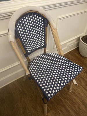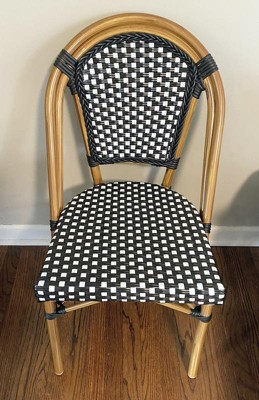 [This review was collected as part of a promotion.] Flash Furniture - Bordeaux Indoor/Outdoor Commercial French Bistro Stacking Chair, Black and White PE Rattan Back and Seat, Bamboo Print Aluminum Frame in Natural is very sturdy and beautiful. I would definitely recommend