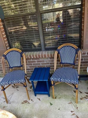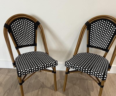Emma & Oliver Soie Set of Two Stacking Bistro Chairs with Black and White PE Seat and Back and Bamboo Finished Aluminum Frame for Indoor/Outdoor Use