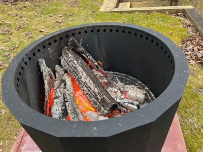 [This review was collected as part of a promotion.] This fire pit is nice and big. We put some concrete pavers under the fire pit as a base for it to sit on. After our fire, I emptied the ash out, and a lot of it fell through the grate, so I had to tip the whole pit over. This wasn't the easiest to clean up. I also wasn't smokeless, either. There was so much smoke, and everyone smelled like smoke, too. I did like that it came with the waterproof cover.