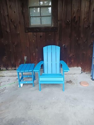 Relax and unwind after a long day with this three piece Adirondack style side table and 2 chairs set. Classically designed, this patio set offers a timeless feel to create a relaxing conversation area. Perfect for your patio, deck, or sunroom, the versatile design of this conversation set invites you to settle in and relax indoors or outside. The chairs feature an extra wide back allowing space for decorative pillows or cushions and a slanted seat to encourage you to recline. The matching side table complements the look of your chairs and offers a place to set your drinks, snacks, or entertainment. UV protected and constructed from weather-resistant polystyrene, this set will hold up in many environments without rotting, peeling, or splintering. Easily clean spills, dirt, or dust with water and a neutral detergent. Assembly takes less than 30 minutes per piece with the included tools and illustrated instructions.